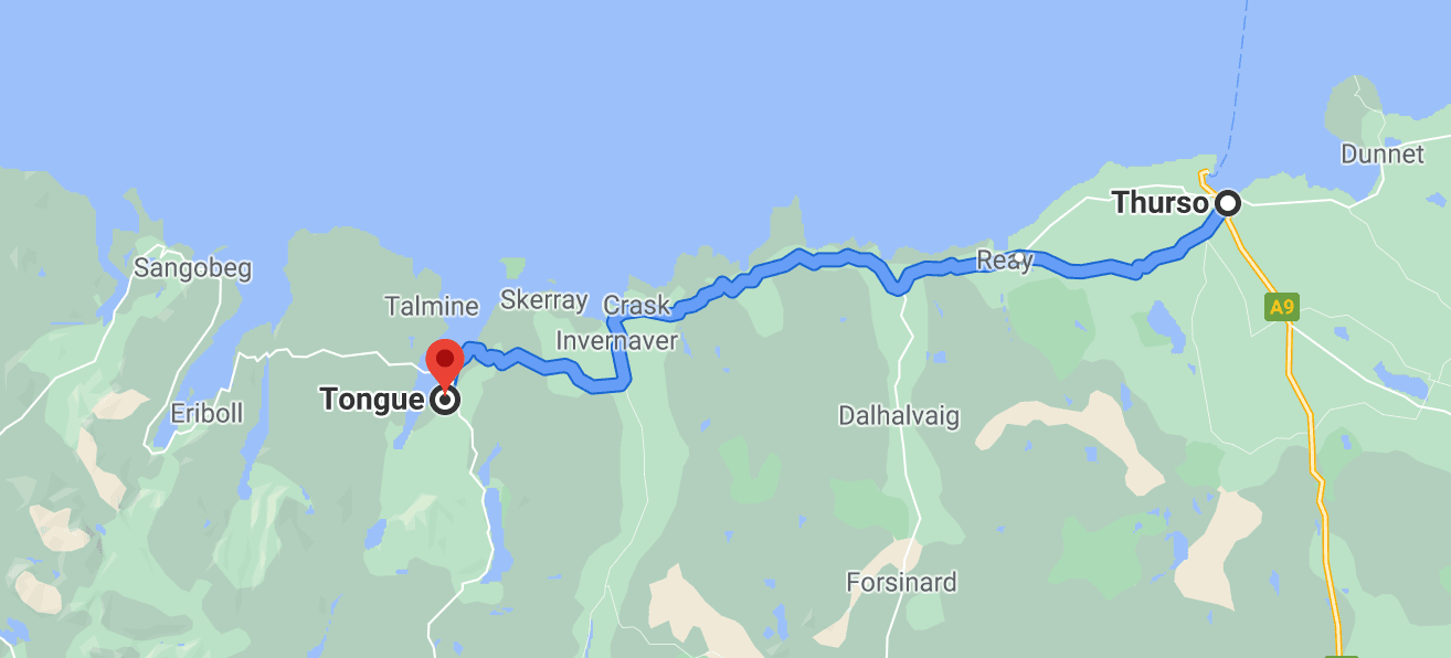 After arriving into Inverness on the sleeper train from London, I set off in the early morning heading North up the East coast of Scotland. The first 40 miles flew by, with a great bike path almost the whole way to Tain (or well marked bike lanes on a moderately busy road). I got to Tain and had breakfast for lunch in a greasy cafe.