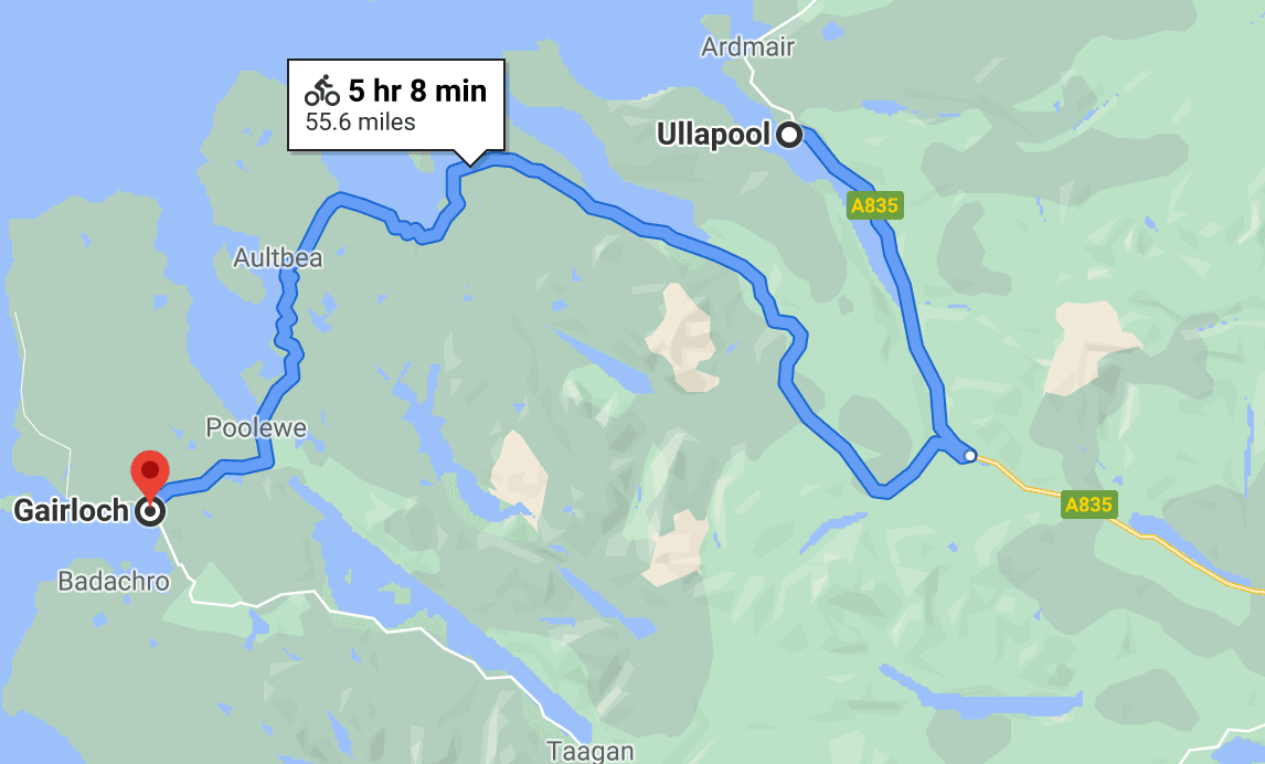 I'm very glad I met the other Mark because the wind from the point I met him into Ullapool was utterly relentless and I swear there were points I had to pedal to go downhill. Without the motivation of a couple of beers at the end, I doubt i'd have made it.