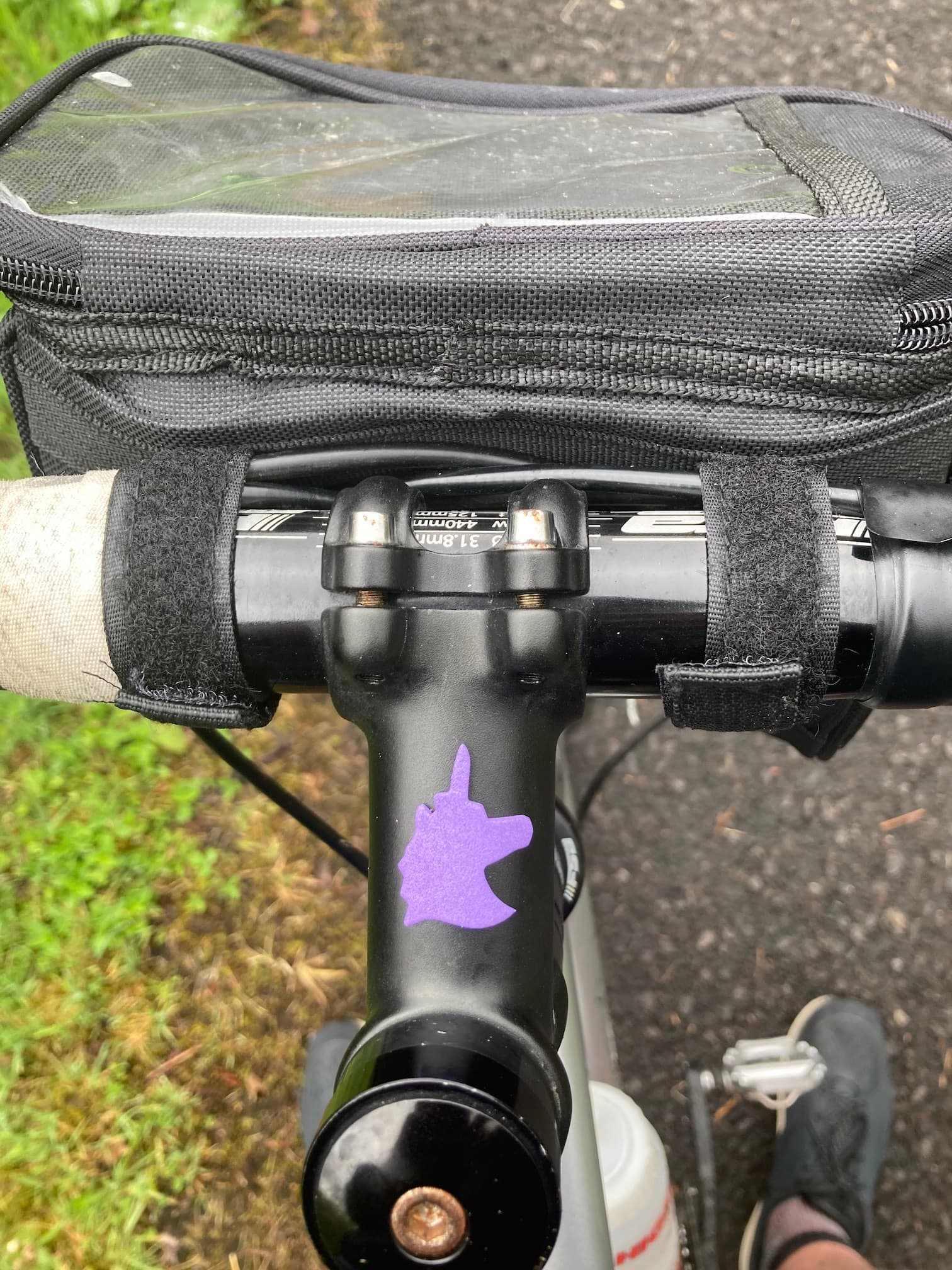 This man told me that he cycled to and from the bridge to Skye daily, until he felt tired. He told me that he regularly stops and chats to people along the way, and passed on some sage advice, including to live in the present. He followed up with an anecdote about a South Korean cyclist he'd found asleep in a bus station on the same strech, who apparently only responded to him after he used a deeply offensive asian accent. I didn't have the heart to tell this man that this was no longer acceptable, but afterward he gave me a unicorn sticker to put on my bike. He'd apparently given out over 800 of these stickers just on this one strech of road.